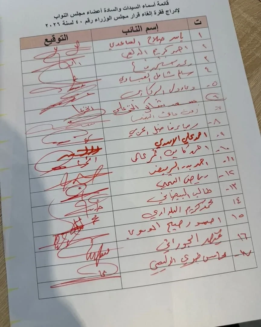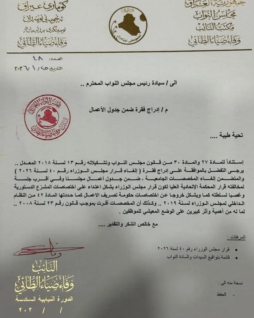 حصلت شبكة "الساعة"، اليوم الأحد، على وثائق تحمل تواقيع نيابية تهدف إلى إدراج فقرة التصويت على إلغاء قرار إيقاف المخصصات الجامعية.