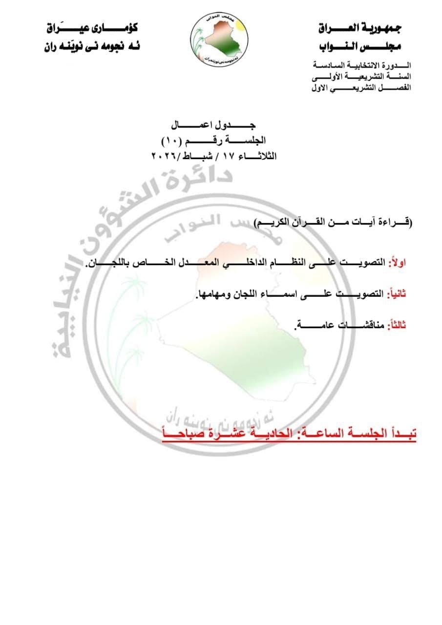 ويأتي الإعلان عن جدول الأعمال في ظل استمرار الخلافات السياسية بين الكتل بشأن انتخاب رئيس الجمهورية.