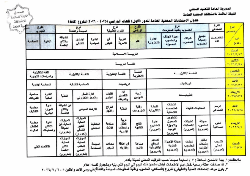 أعلنت وزارة التربية، اليوم الأحد، جدول الامتحانات المهنية العامة.