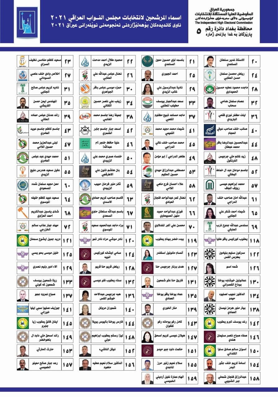 يتنافس ضمن الدائرة 136 مرشح على 5 مقاعد منهم مقعد مشمول بنظام الكوتة النسائية.