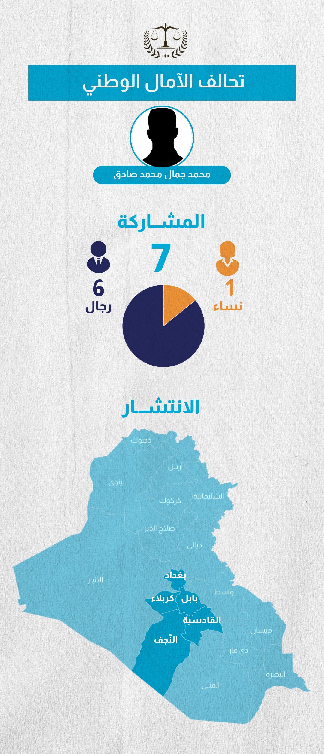الانتشار: النجف، كربلاء، القادسية، بابل، بغداد.